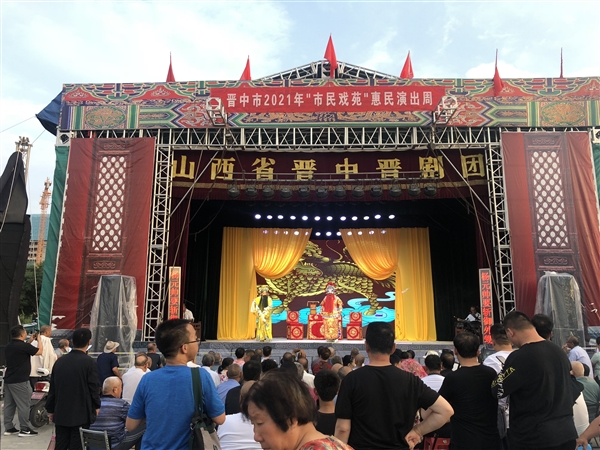 为庆祝建党100周年,切实增强人民群众精神文化获得感、幸福感,由市文旅局主办、市演艺有限公司承办、市城市管理局协办的晋中市2021年“市民戏苑”演出周在市城区广场免费演出,每场演出均由综艺演出和戏曲表演组成。本次活动首站于7月2日在天美杉杉奥特莱斯广场开启,每场演出都观众满满,精彩的演出赢得了观众经久不息的掌声。