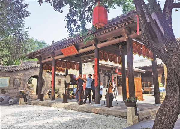 在张壁古堡,随处可以遇见惊喜。寻常巷陌中,或可看到形意拳家、齐云社、干调秧歌传习所等非遗文化主题院落,或可遇见正在开展古法造纸、拓碑、扎染、琉璃上釉等研学的团队……