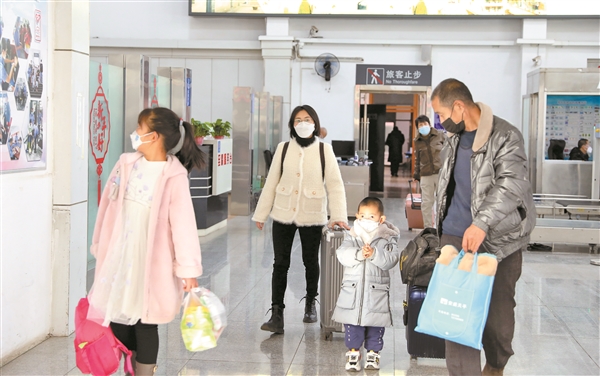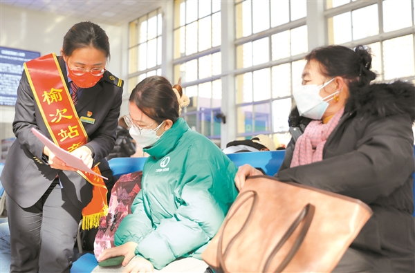 7日中午,记者来到榆次火车站,在候车大厅,见到了一张张期待回家的笑脸。为了营造温馨、健康、安全的出行环境,铁路部门在候车大厅贴上窗花、挂上灯笼,还开展了送春联活动,弥漫着浓浓的年味。此外,榆次火车站还加强对卫生间、洗手池、座椅等重点部位的通风消毒,加强旅行健康宣传,引导旅客佩戴口罩,强化自身健康防护。