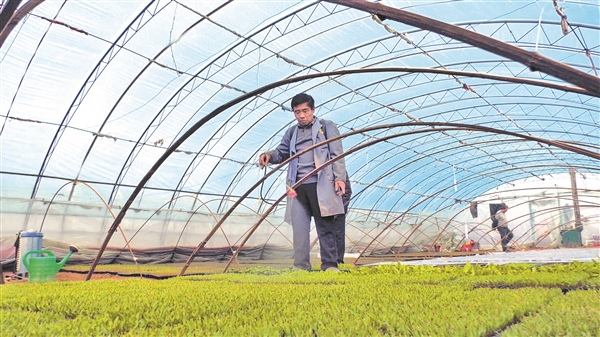 在香乐乡罗城村大棚种植户任丽萍家中,一排排育苗盘整齐摆放,绿油油的种苗生机勃发。每年任丽萍家都会培育千数亩的种苗,等到温度适宜后,育苗盘里面的种苗便会被移植到大棚中,再经过墩苗、施肥、浇水,为其二次生长做足准备。