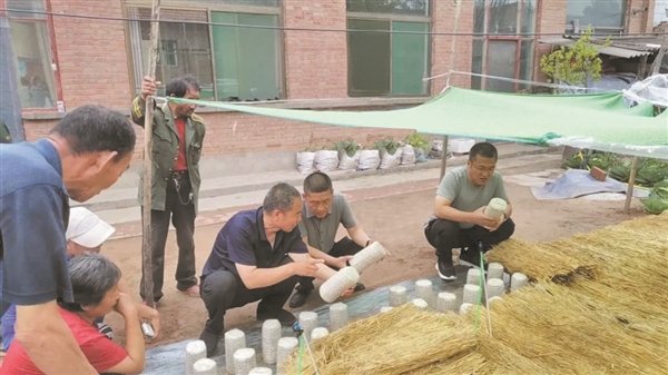 图为榆社县农业农村局种植专家帮助村民解决黑木耳种植过程中存在的问题。 周俊芳 摄