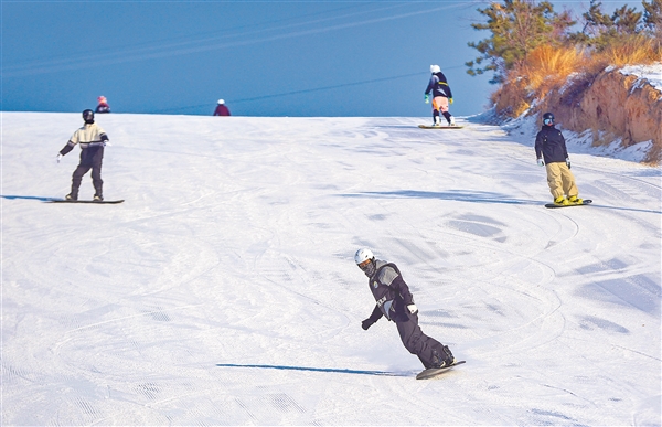 12月23日,记者在九龙国际滑雪场看到,众多滑雪爱好者在雪道上尽情滑行,欢声笑语在雪场上回荡。