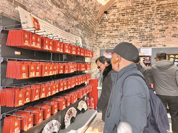 近日,在王家大院桂馨书院文创馆,红彤彤的百家姓福袋、精美别致的冰箱贴、自带镂空效果的笔记本等各类文创产品有序摆放。众多文创爱好者在琳琅满目的文创产品中选择自己喜爱的“小礼物”,还有游客忙着集邮盖章,文创馆内热闹非凡。在恬逸居文创店,茶杯、保温杯等文创产品同样深受广大游客的喜爱,前来选购的游客络绎不绝,每天的销售额可达万余元。