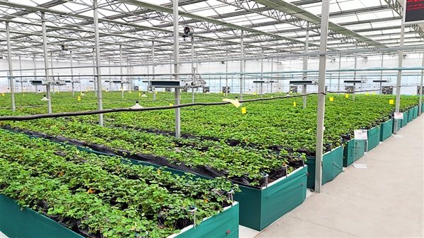 在晋中国家农高区京东农场,玻璃温室里种植的8万株草莓引人注目。得益于先进的种植技术和设备,玻璃温室实现了一年四季的连续生产。仅需一名农技师就可以对5000平方米的温室大棚进行高效管理。据京东农场项目负责人吴卓航介绍,通过现在的设备和种植方式、模式,草莓种植单产高于普通村民种植产量的1.5倍。