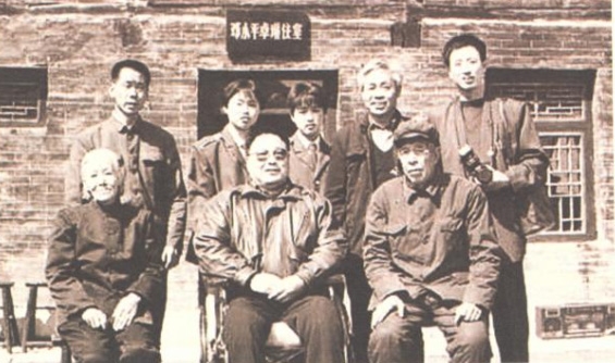 邓小平之子邓朴方(前排中)与奶娘郭金梅一家在云头底村 |