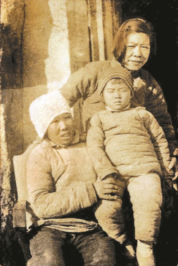 辽县第一任女县委书记陈舜英(右一)与女儿、奶娘刘捧合影 |