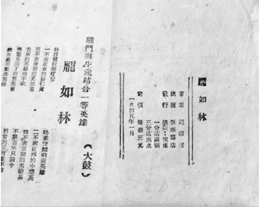 赵树理编写的大鼓词《战斗与生产结合一等英雄——庞如林》 |
