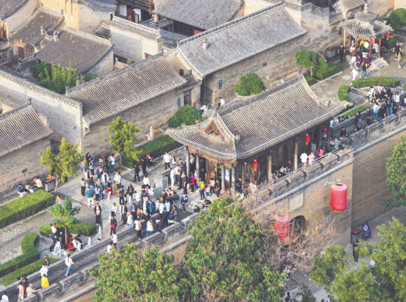 灵石王家大院景区,游客观赏古代民居,感悟晋商文化。 |
