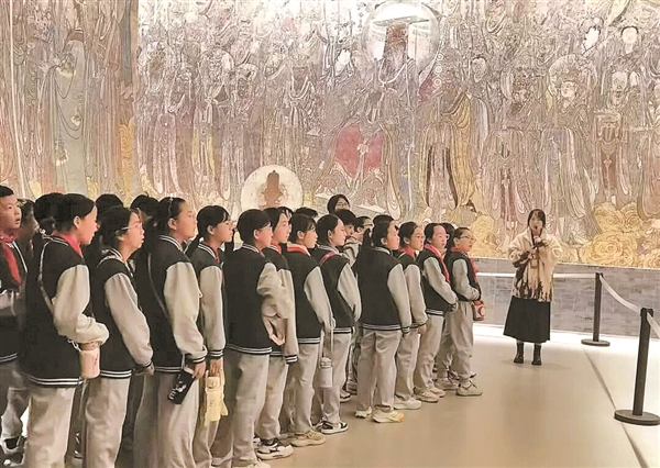 图为学生在壁画馆内研学。