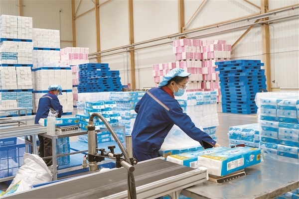 | 强伟纸业年产10万吨高档生活用纸项目后加工车间。王方超 摄 |