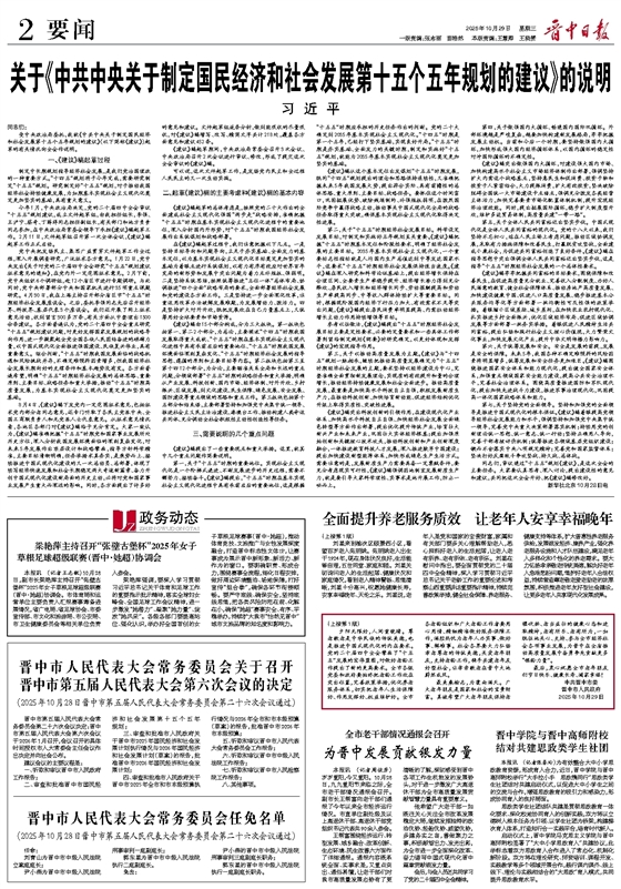 关于《中共中央关于制定国民经济和社会发展第十五个五年规划的建议》的说明