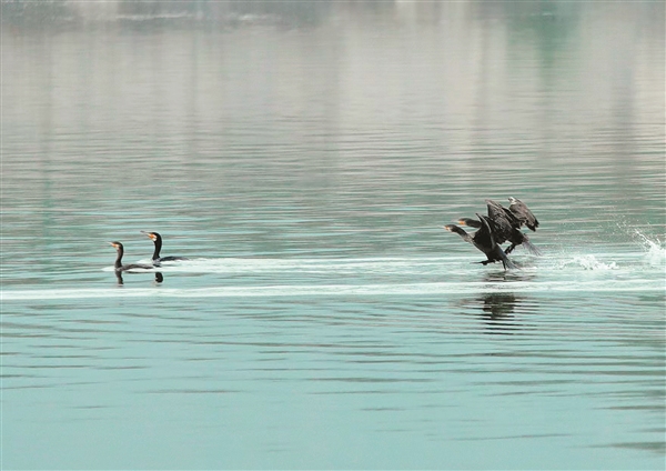 11月1日,太谷凤凰山森林公园的一座蓄水池边,迁徙而来的白鹭在水面上低空掠过。随着气温逐渐下降,太谷湿地公园再次迎来了各种迁徙候鸟,白鹭、苍鹭、白天鹅、鸬鹚等纷纷在此落脚栖息。