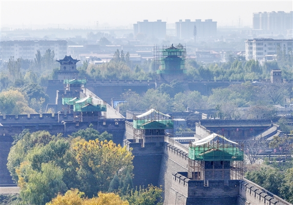 平遥古城东城墙开展修缮作业