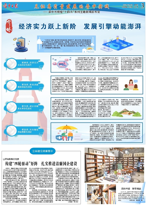 始终把发展作为第一要务,全力以赴拼经济、稳增长,综合实力跃阶而上。经济体格更加强壮。GDP相继跨过三百亿元、四百亿元两个台阶,今年预计达到432亿元;规上工业总产值迈过千亿元大关,较“十三五”末增长65%,占晋中1/3;一般公共预算收入稳居全省前十、晋中第一,今年有望突破40亿元,较“十三五”末翻了一番。三次产业协同升级,比例优化为1.6:48.5:49.9,形成更加稳固的“三二一”格局,背后是工业向高端化、绿色化持续迈进,是服务业撑起了经济的“半壁江山”。市场主体活力迸发。五年时间,市场主体、“四上企业”分别净增长3494户和181户,3户企业产值超百亿元,5户企业上榜全省民企百强,安泰集团连续三年荣登全国民企500强。在经济稳步增长的同时,介休也成功跻身中国中部地区综合竞争力百强县、中国县域旅游综合竞争力百强县,扛牢了“经济大县挑大梁”的使命重担。