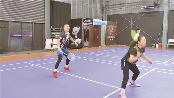 | 羽毛球爱好者齐聚场馆展开双打比拼。 |