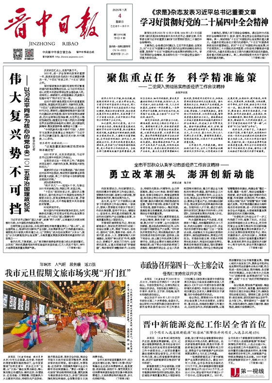 本报讯 (记者闫晓媛 通讯员李永芳)今年元旦假期,在市委、市政府的周密部署和高效推动下,全市紧紧围绕“怡然见晋中 欢乐过大年”主题,以“文旅+”融合发展为路径,精心策划推出非遗民俗、跨年狂欢、冰雪娱乐、红色体验、文博雅趣、田园康养六大主题系列活动,持续优化产品供给、提升服务品质、筑牢安全防线,推动全市假日文旅市场实现平稳有序、氛围浓郁的良好局面。假日期间,冰雪体验、红色研学、田园康养等新兴业态与跨年活动深度融合,“景区+商圈+文化场馆”联动格局持续完善,惠民政策与高效服务协同发力,多部门联动保障机制运转高效,全面激活假日文旅消费市场。