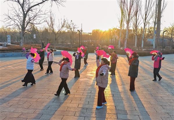 虽已过小寒,平遥古城的寒意挡不住市民的健身热情。近年来,平遥县持续推进全民健身工作,完善公园等公共健身场所设施、配齐各类运动器材,让市民在家门口就能享受到便捷的健身服务。越来越多人结合自身情况,选择心仪的运动方式,在户外舒展筋骨、强健体魄,用活力驱散寒意,以运动滋养身心健康。图为迎薰公园内,市民手持粉扇翩翩起舞。