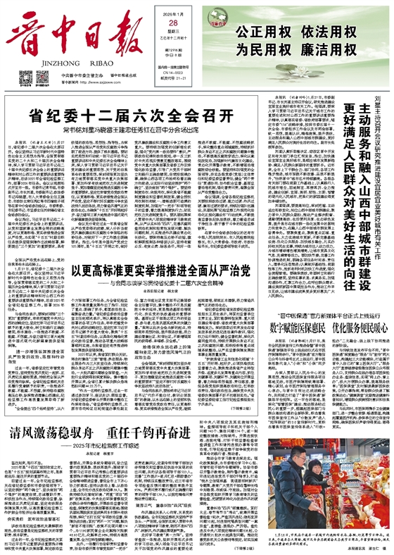 本报讯 (记者王文安)1月27日,省纪委十二届六次全会在太原召开。会议坚持以习近平新时代中国特色社会主义思想为指导,全面贯彻落实党的二十大和二十届历次全会精神,深入学习贯彻习近平总书记在二十届中央纪委五次全会上的重要讲话精神和对山西工作的重要讲话重要指示精神,总结2025年全省纪检监察工作,部署2026年任务。会议以视频形式开至市一级。市委书记常书铭,市委副书记、市长刘星,市委副书记、政法委书记冯晓雷,市人大常委会主任王建忠、市政协主席任秀红等市四套班子领导在晋中分会场参加会议。市委常委、市纪委书记、市监委主任刘剑锋在省主会场参加会议。