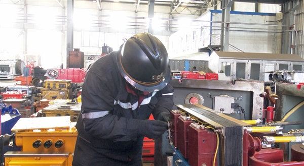 | 工人正在检修水泵房的高压软启动开关。 王玮 摄 |