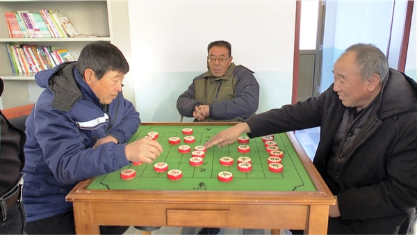 | 老人们在义兴镇井玉沟村社区老年食堂下棋。 赵慧 摄 |