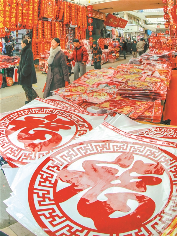 春节日益临近,我市各大商超全面开启“新春模式”,处处张灯结彩,市民置办年货的热情持续高涨。在市城区华距商城,大红的对联、烫金的福字、喜庆的灯笼沿街摆开,一抹抹“中国红”将节日氛围拉满,市民们驻足挑选,指尖划过红彤彤的春联,脸上满是对新年的期盼,挑选心仪的年饰,为家中添上新春的喜庆。