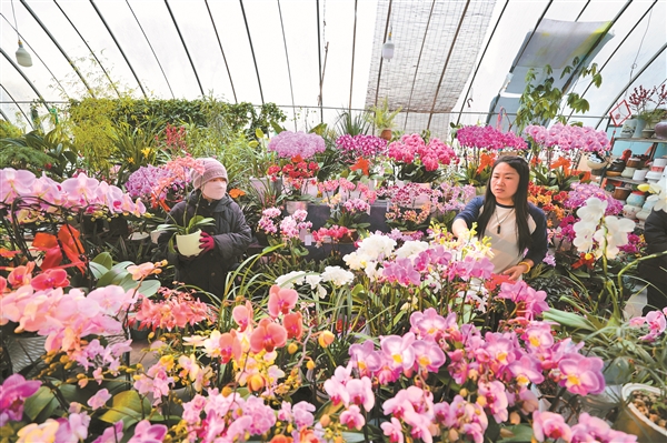 “每年过年我都会买两盆蝴蝶兰,艳丽的花朵看着就喜庆,能给家里增添不少喜气。”市民王彩霞一边挑选着蝴蝶兰,一边笑着对记者说。一盆盆娇艳的鲜花,一株株翠绿的绿植,不仅扮靓了市民的居家环境,更承载着大家对新春的美好期盼,让这个新年在花香萦绕中更有滋味。