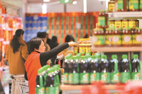 在我市各大商场,各类迎新春活动接踵而至,打卡送福、年货特惠等活动轮番上线,前来购物的市民络绎不绝,热闹的场景尽显新春的烟火气。在市城区小鲜大郭超市内,粮油米面、生鲜果蔬、糖果礼盒等年货一应俱全,名优特产与本地土特产专区格外醒目,整齐陈列的特色商品成为市民选购的热门。