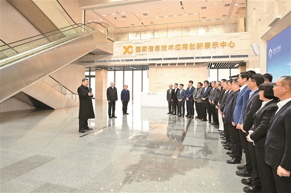 9日上午,习近平来到位于北京亦庄的国家信创园,详细了解信息技术创新应用等情况,仔细察看人工智能、机器人等科技创新成果展示,频频同科研人员和科技企业负责人代表交流。他说,今天来这里现场学习,很开眼界,看了之后对国家科技创新更加充满信心。他强调,建设社会主义现代化强国,关键在科技自立自强,北京要发挥自身优势,在这方面作出更大贡献。他勉励广大科技工作者厚植报国情怀,发扬奋斗精神,在中国式现代化征程上建功立业。