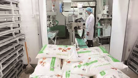 | 一袋袋封装好的面粉将被运往全县各个销售网点。 杨志新 摄 |