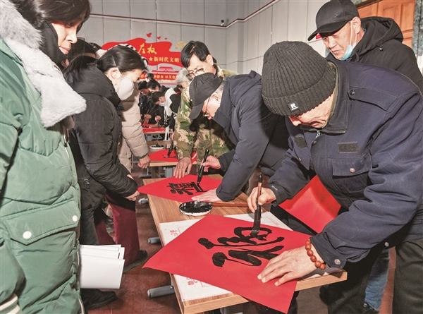 红联映笑脸,笔墨暖人心。一副副春联不仅寄托着美好祝愿,更凝聚着文化惠民的温度,传递着对群众生活的深切关怀,绘就出一幅温情满满、喜庆祥和的新春文明画卷。