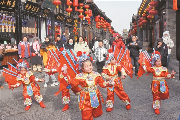 今年的“平遥中国年”以非遗节目为核心,汇聚全国各地特色非遗展演,致力于让更多民众近距离感受非遗魅力、领略中华优秀传统文化底蕴。除非遗展演,嘉年华还精心打造卡通巡游、山海经主题秀、生旦净末丑互动、大熊猫萌趣表演等老少皆宜的节目,满足不同年龄段游客需求,让大家在欢乐中感受新潮年味。