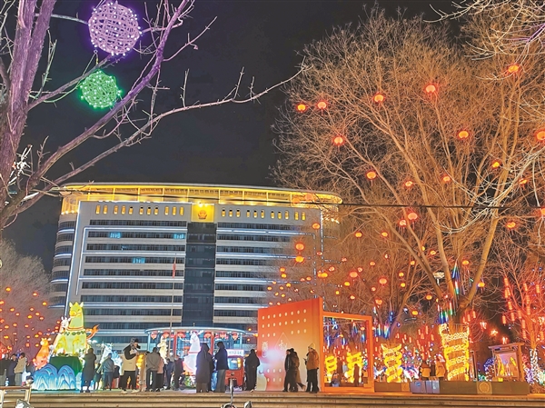 春节假期,璀璨灯火映照街头,吸引众多市民走上街头观赏,欢度祥和新春。