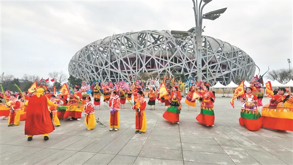| 寿阳高跷竹马戏惊艳亮相北京 “非遗贺新春 民俗闹红火” 活动现场。 |
