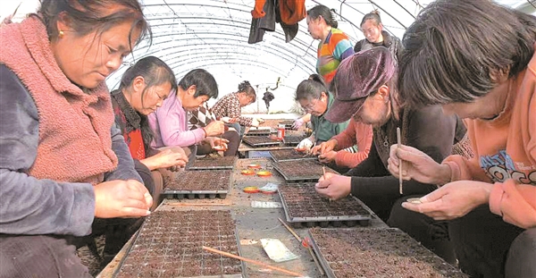 | 村民正忙着培育新苗。张娜 摄 |