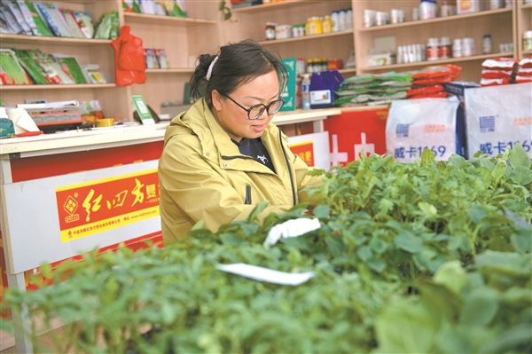 3月17日,太谷区一家农资商店内,销售人员正在整理各类种苗,保障春耕备耕期间农资供应充足。