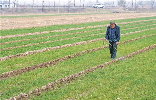 3 月 17 日,平遥县洪善镇小沿村村民在田间为小麦喷洒除草剂。当前正值小麦春季管护关键期,平遥县广大农户抢抓农时开展除草作业,保障麦苗健壮生长,为夏粮丰收夯实基础。 本报通讯员 梁生仁 摄