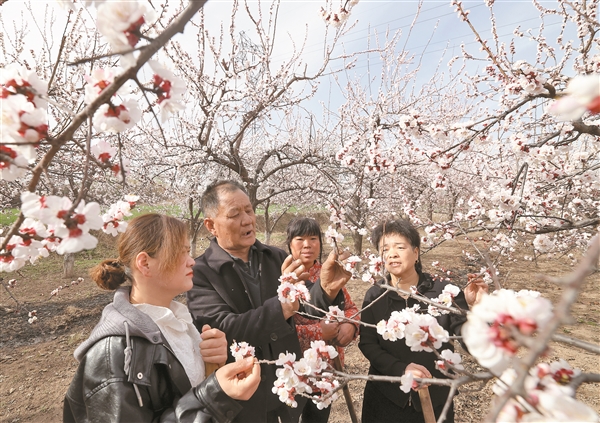 介休市洪山镇崇贤村的采摘园内杏花迎春绽放