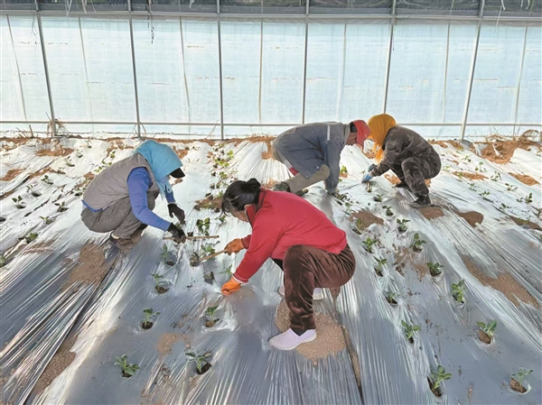 | 近日,寿阳县西洛镇跨村联动片区的彩椒种植基地,农户们在智能温室大棚内抢抓农时,精心移栽彩椒幼苗,一派繁忙的春耕生产景象。刘宇星 摄 |