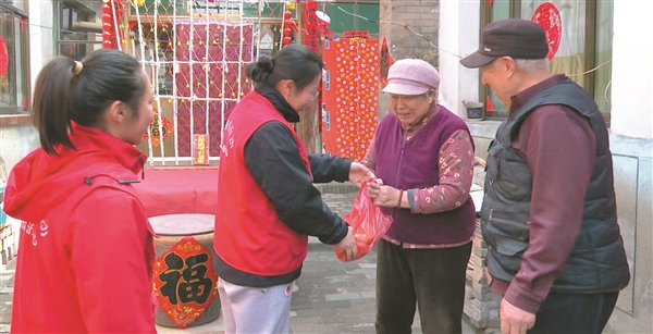 右图:近日,祁县城区古城社区工作者和网格员走访慰问所在辖区的老人,关心他们冷暖。