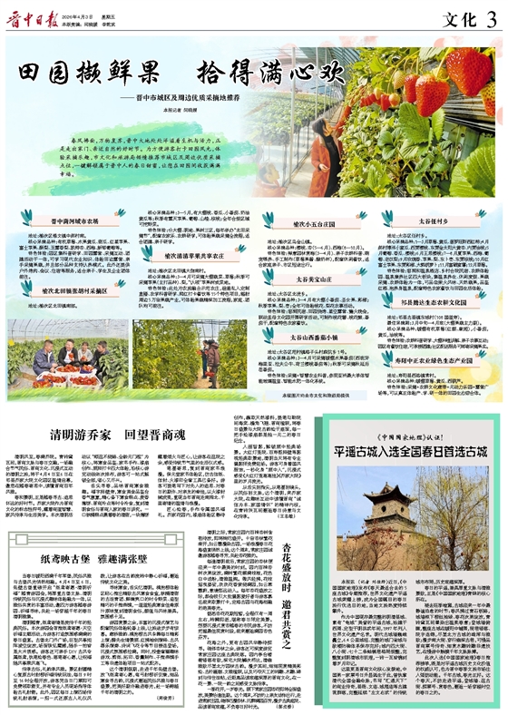 春风拂面,万物复苏,晋中大地处处洋溢着生机与活力,正是走出家门、亲近自然的好时节。为方便游客打卡田园风光,体验采摘乐趣,市文化和旅游局倾情推荐市城区及周边优质采摘点位,一键解锁属于晋中人的春日甜蜜,让您在田园间收获满满幸福。