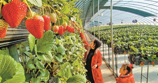 核心采摘品种:暖棚草莓、黄瓜、西葫芦。