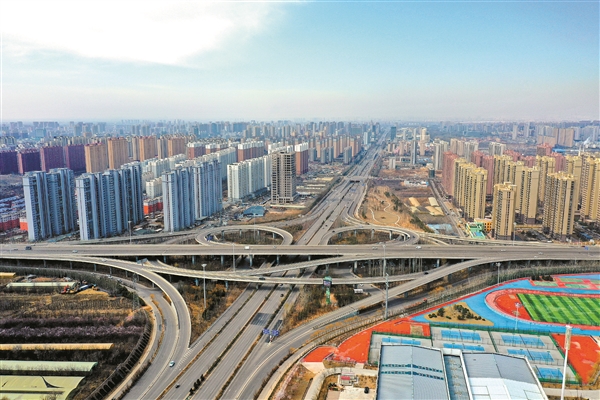 4月2日,俯瞰市城区龙湖街立交桥,纵横交错的匝道如城市“动脉”,串联起城市发展新格局。近年来,我市持续推进交通路网、民生配套等重点城建项目,不断补齐城市功能短板,让城市发展更有温度。 本报记者 刘 勇 摄
