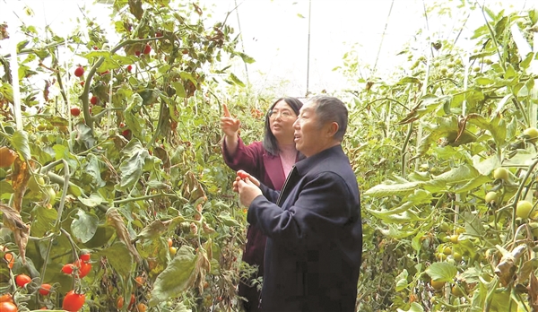 | 农技员正在蔬菜大棚里进行现场讲解。 范金宇 摄 |