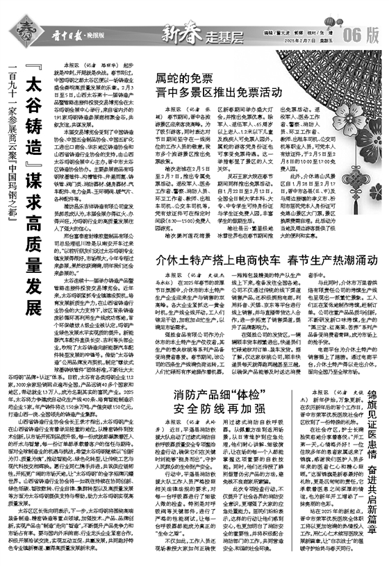 本报讯 (记者 张颖) 春节期间,晋中各旅游景区迎来客流高峰。为了吸引游客,同时表达对节日期间坚守在一线岗位的工作人员的敬意,我市多个旅游景区推出免票政策。