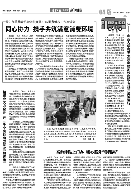 本报讯 (记者 史俊杰) 3月8日,记者从晋中瑞达公交有限公司获悉,为进一步方便山西大学城各高校师生出行,从当日起,山西大学城-太原南站东广场地铁接驳专线开通试运行,线路暂定为每周五、六、日及国家法定节假日7:00-19:30(由山西传媒学院发车)试运行,票价为3元。