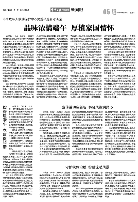 市未保中心主任孙瑞卿表示,此次端午主题活动以寓教于乐的方式,让孩子们深刻感悟端午节蕴含的家国情怀与文化精髓,传承中华优秀传统文化薪火。今后,该中心将充分发挥民政部门的纽带作用,打造系列化、品牌化的文化实践活动,让传统文化滋养农村留守儿童的精神世界,为他们的健康成长注入持久的文化力量。