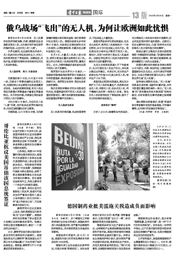 新华社北京9月28日电 无人机事件在欧洲持续发酵,丹麦、德国称在各自国家发现无人机,北约表示将升级在波罗的海的任务,以应对无人机“入侵”。