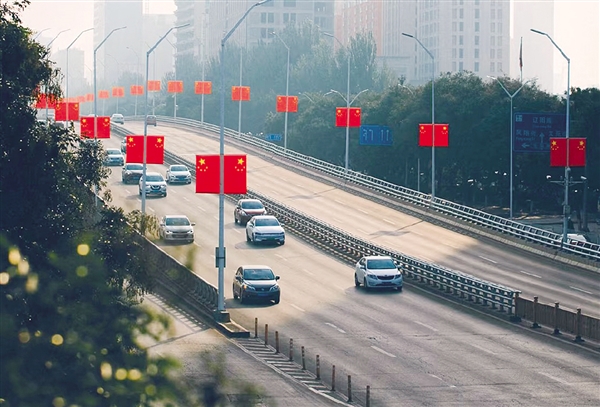 连日来,市城区各主干街道、大街小巷五星红旗迎风飘扬,“中国红”构成了城市最亮丽的风景线,将庆祝中华人民共和国成立76周年的氛围感拉满。9月下旬以来,市市政公用事业服务中心分别在市城区龙湖街、锦纶路、顺城街、汇通路、魏榆路、新华街等6条主干道的灯杆上悬挂国旗1000组。国旗悬挂期间,该中心工作人员每日巡查,及时更换、维护国旗,确保国旗整齐靓丽,展现城市昂扬向上、不懈奋斗的气质。驱车行驶在市城区龙湖街、魏榆路等主干道上,只见随着路灯杆的走势,五星红旗在金色秋日里展现出欣欣向荣、朝气蓬勃的景象。此外,全市各县(区、市)的各条主街道,由商家根据相关规定,悬挂起一面面国旗营造节日氛围。