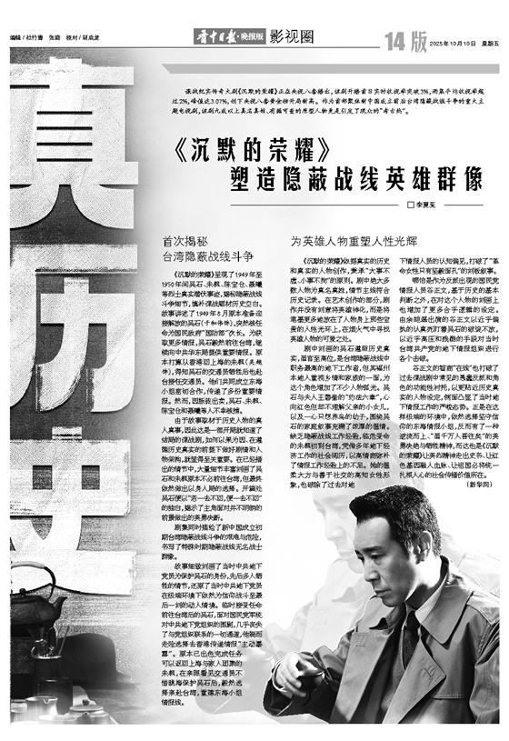 谍战纪实传奇大剧《沉默的荣耀》正在央视八套播出,该剧开播首日实时收视率突破3%,两集平均收视率超过2%,峰值达3.07%,创下央视八套黄金档开局新高。作为首部聚焦新中国成立前后台湾隐蔽战线斗争的重大主题电视剧,该剧九成以上真名真姓、有据可查的原型人物更是引发了观众的“考古热”。
