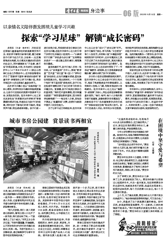 本报讯 (记者 路丽华) 为切实回应困境儿童普遍存在的家庭教育支持不足、有效学习辅导欠缺等问题,着力破解孩子们学习动力不足、方法单一、社交薄弱等成长难题,充分激发关键成长阶段的内生动力,同时缓解家长“不会教、教不会”的现实困境,日前,市未成年人救助保护中心(以下简称市未保中心)联合山西铸仁社会工作服务中心,在市救助管理站开办了“探索学习星球·解锁成长密码”晋童守护·亲情陪伴之学习兴趣小组,来自市城区的10多名困境儿童参加学习。
